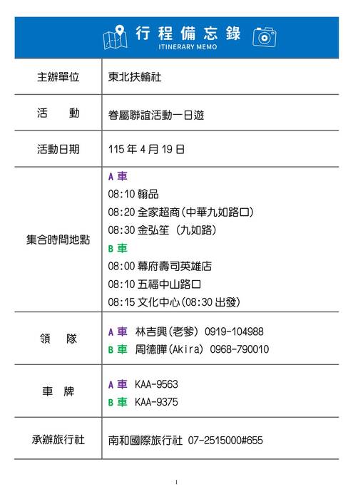 高雄東北扶輪社眷屬聯誼活動一日遊